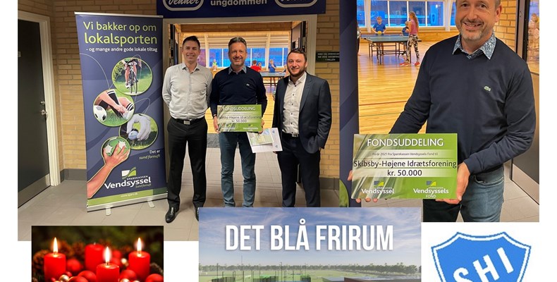 I forbindelse med den nye hovedsponsoraftale kom afdelingsdirektør Søren Kjær Christensen og regionsdirektør Casper Nissen Larsen forbi Højene, og med sig havde de også en check til SHI på 50.000 kroner. Pengene er støtte fra Sparekassen Danmarks fond, hvor SHI havde søgt midler til etableringen af Det Blå Frirum. Sponsorformand Leif Højmark Petersen tager imod checken og takker også Søren og Casper for det nye hovedsponsorat.